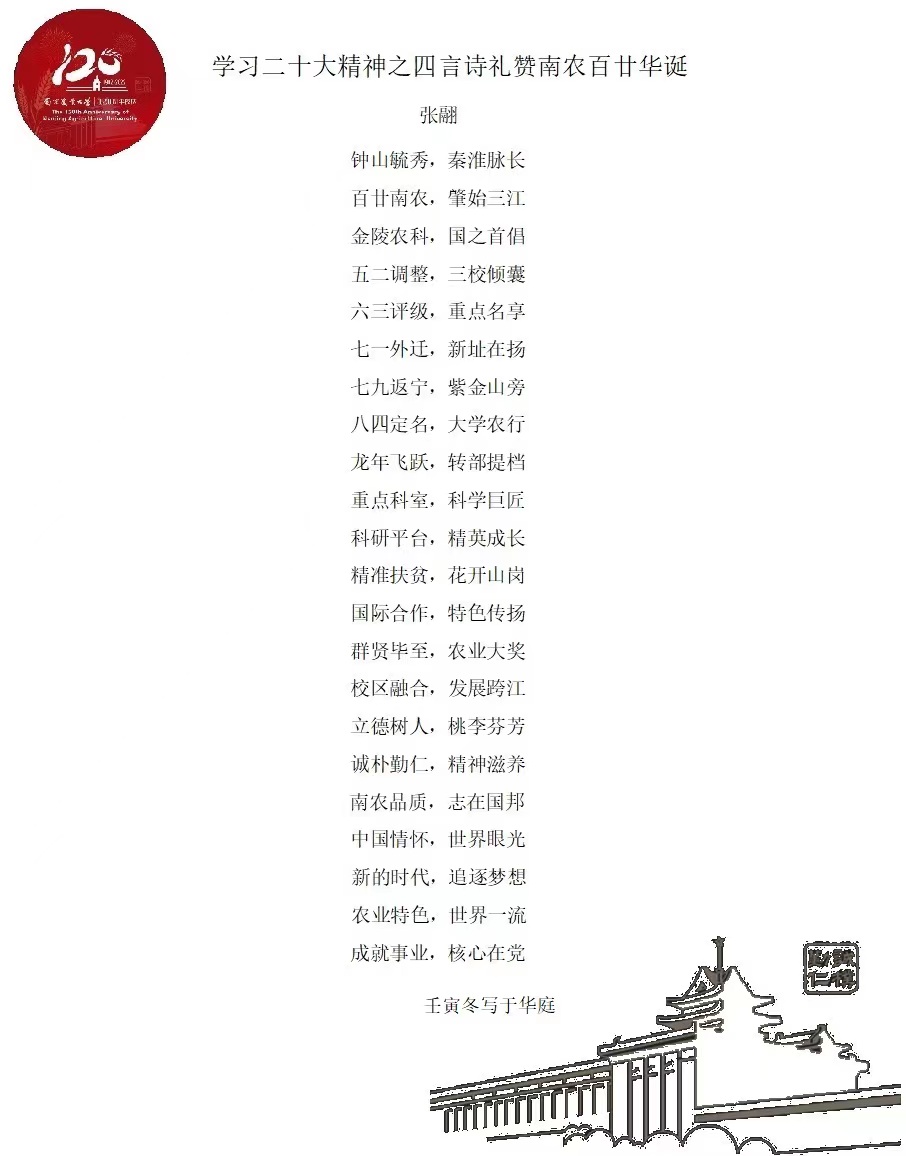 广大教职工积极参与本次活动,大家围绕“礼赞二十大、喜迎百廿庆、奋进新征程、踔厉向未来”主题,充分结合家国情怀、校史校训等元素,提交了主题鲜明、观点正确、内涵深刻的作品。其中,部分教职工采用诗歌、散文的形式来礼赞党的二十大风采,有的教职工采用绘画、书法的形式来庆祝南农120周年华诞,还有的教职工采用视频配音的形式来表达踔厉奋进的决心。